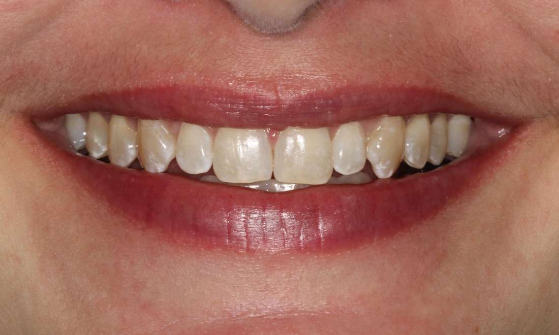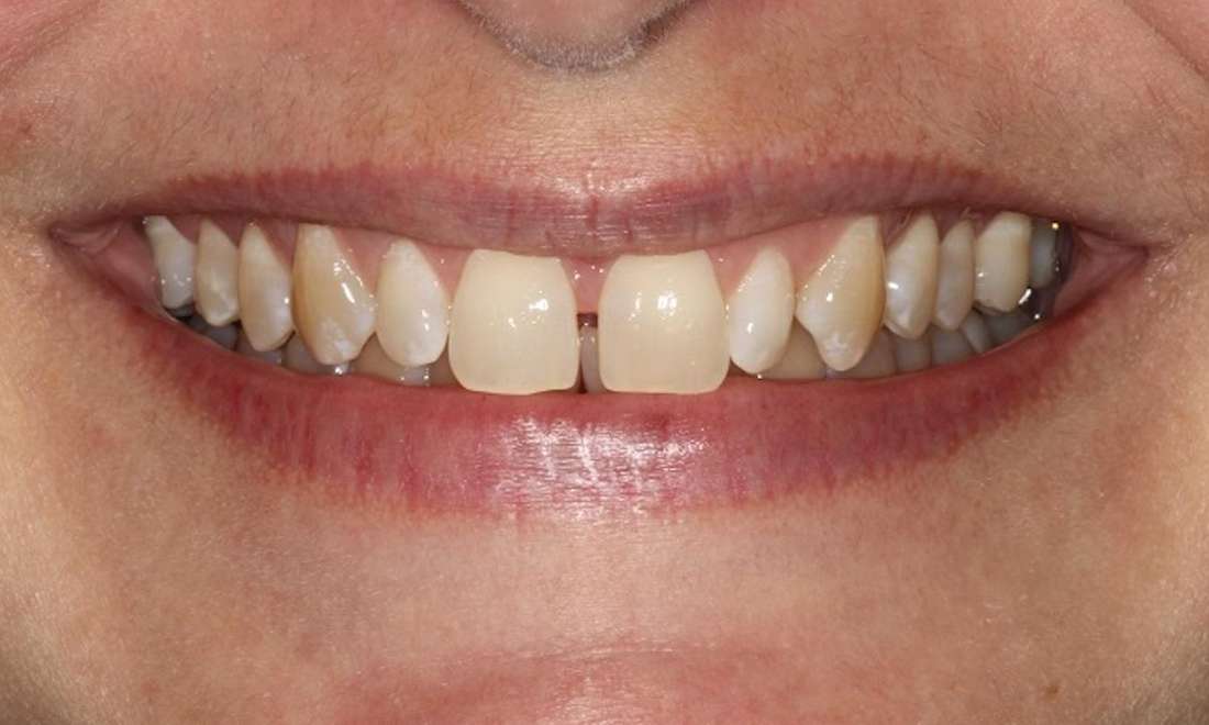 This one's one of our very own NBDC family smiles. Our lovely receptionist has always had a diastema (space between the front two central incisors) and wanted it closed. In just over a year, Dr Georgia was able to close the gap with a lite case of Invisalign. Look how full and perfect her smile looks now!