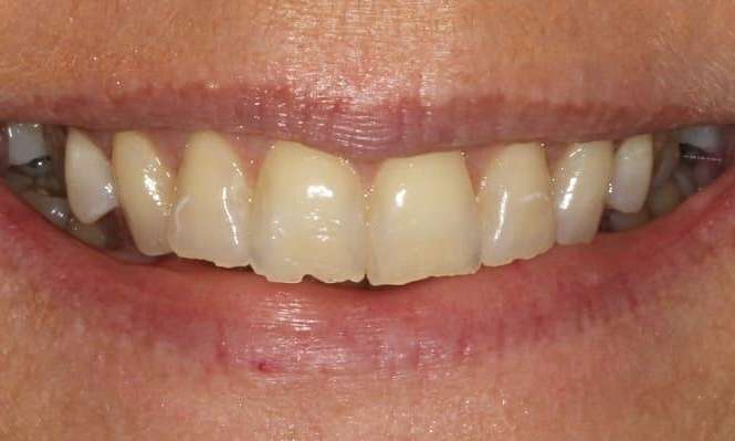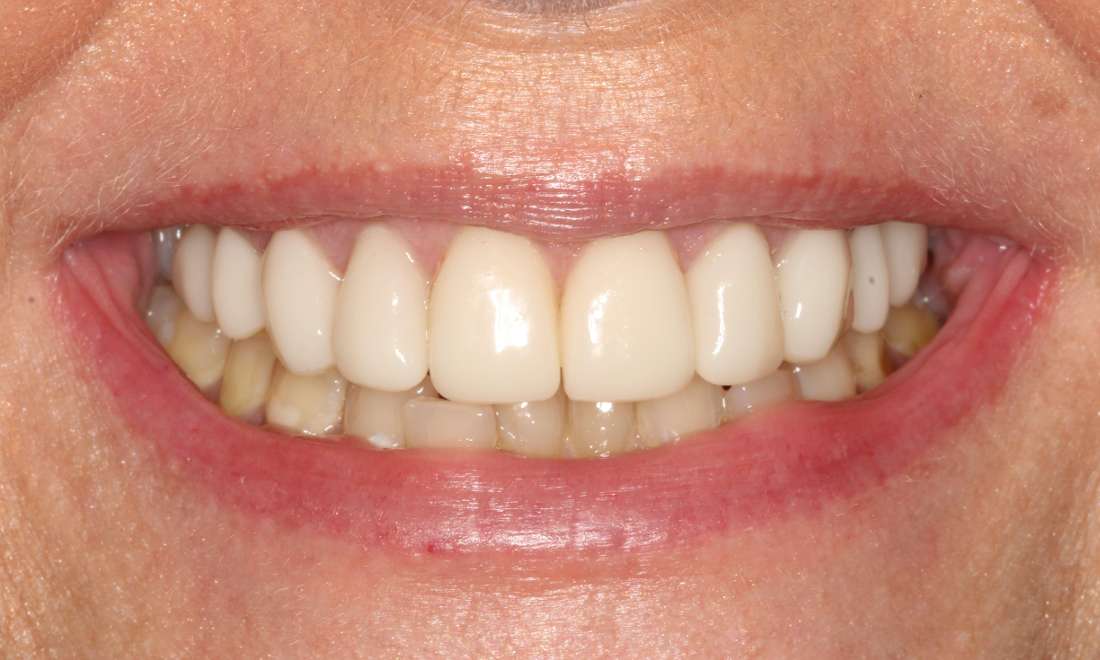 This lovely lady had been coming regularly to see us for her routine checks and cleans. Over the years her teeth started to get more sensitive with general wear and tear. Dr Georgia suggested a combination of composite resin fillings and porcelain crowns to help restore her teeth and combat the sensitivity. Look at the difference it makes now that her teeth are better protected.